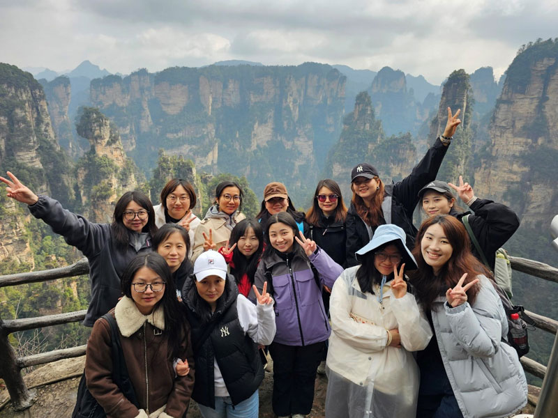 “天門中斷楚江開,碧水東流至此回?!崩畎坠P下的壯闊山水,在湘西的層巒疊嶂間找到了現(xiàn)實(shí)映照。3月13日,唐能翻譯公司的伙伴們踏著春日的晴光,開啟了一場穿越云海的詩意之旅,于張家界的奇峰秀水中尋覓靈感,在長沙的煙火巷陌里品味人文。